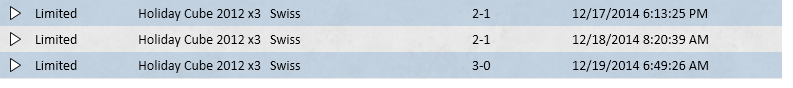 After receiving a real thrashing in the legacy cube (and then Khans, for good measure) I was frustrated and resolved to improve.  My rating had slipped far below where I usually was, and one only has so many phantom tix.  When the holiday cube came online, I was first in line.