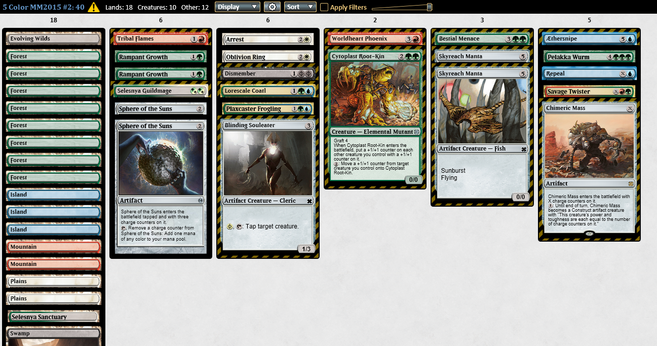 This past friday night, as I rolled into my LGS, I had a vision: I wanted to play powerful spells and not give a crap what colors they required.  Certainly, the recent episode of Limited Resources, where Kenji advocated for the deck, was an influence.  But I had wanted to try this out for a while, and I wanted to try to put certain ideas I had about the format into action.